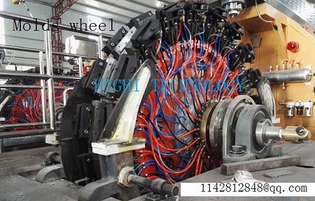 lThe machine is composed of extruder, molds forming machine, bottle cooling conveyor and separating device. It has the reasonable structure, effective protection device and the noise is lower than 85db in the operation